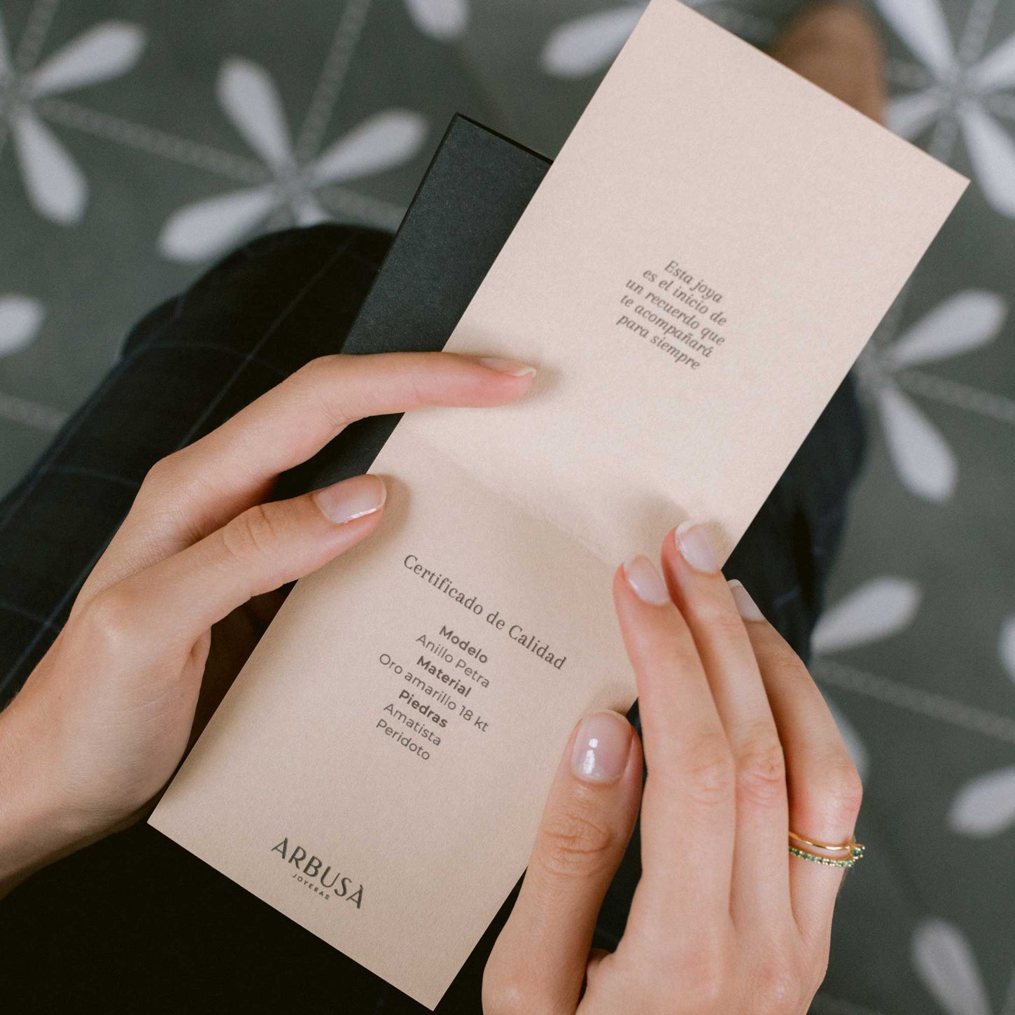 En Arbusà Joyeras sabemos que nuestro mayor tesoro es tu confianza, por eso la calidad de nuestras joyas es excelente y las certificamos de forma individual.