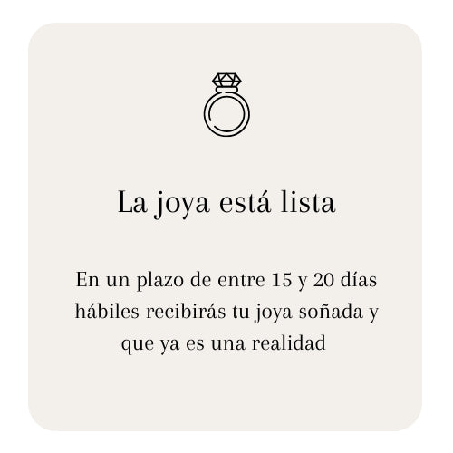 La entrega de tu pedido se realizará en un plazo de 48h en el caso de estar disponible (Ready To Go) y en un plazo de 20 días hábiles en el caso de las joyas Pre-Order.